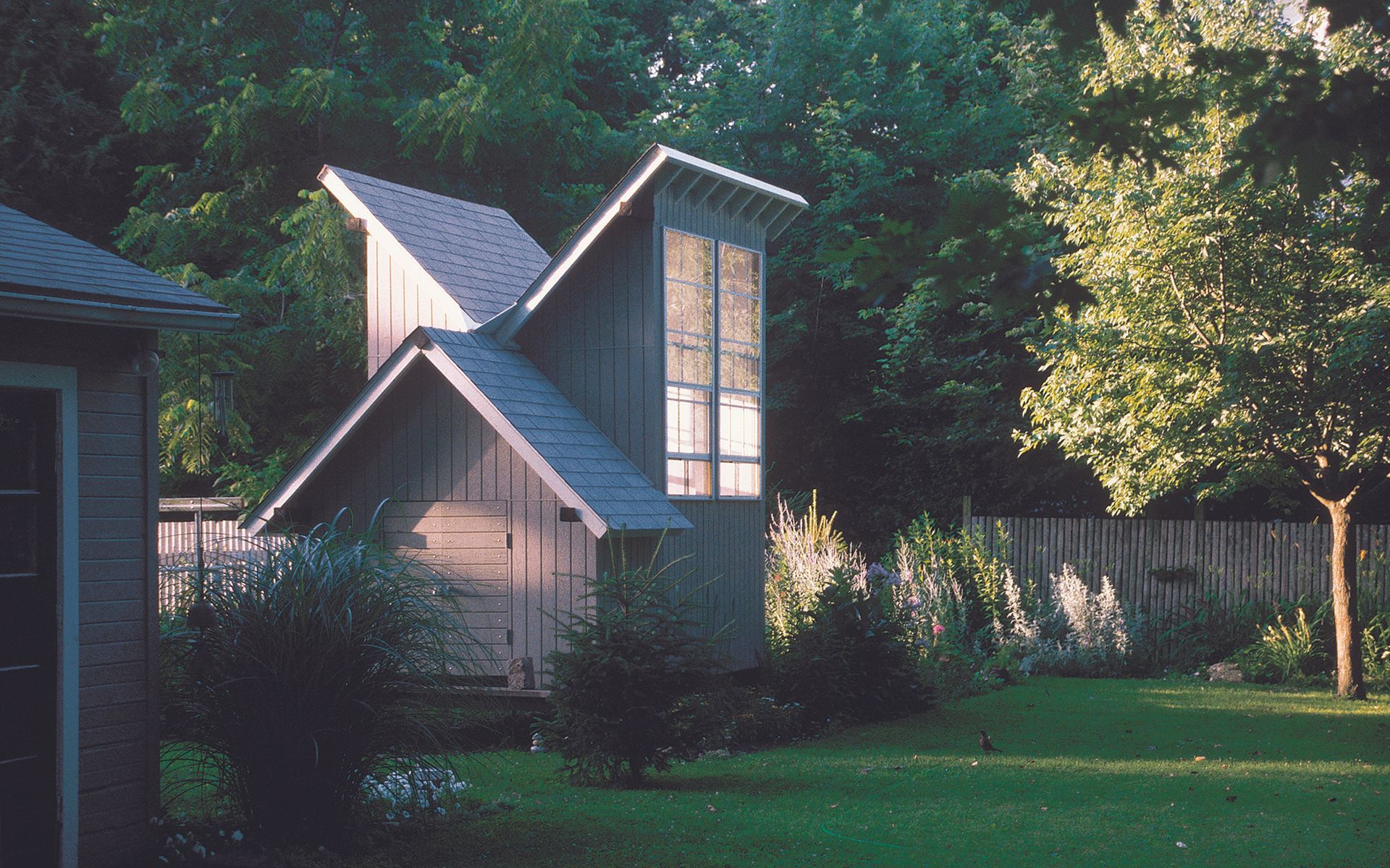 The meditation hut is located in the backyard of a small residence in a working-class neighborhood in central Illinois. In it’s design, construction, and purpose, it was conceived as both a form and a process that encouraged the mind to focus, to center, and to transcend. The architect completed the construction himself - clearing, digging, anchoring, framing, wiring, cladding, and finishing. The hut was built entirely from off-the-shelf products in order to assimilate it into its vernacular setting. The experience of its creation was a retreat both to and from work.