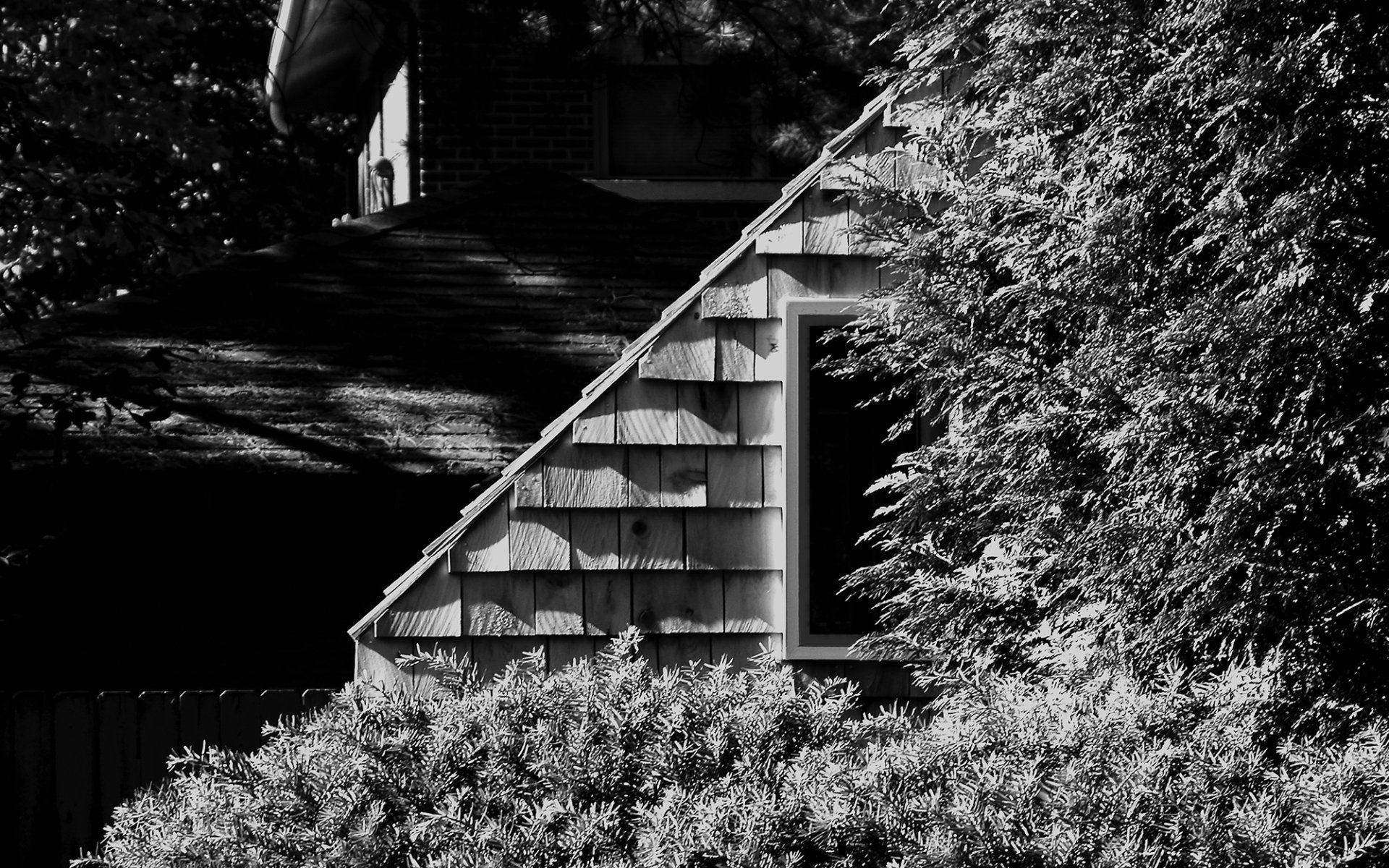 Much like a wrapped gift, a single material - white cedar shingles - cover the entire exposed exterior surface. The hand cut shingles were layered and detailed to create a simple archetypal house shape - like a child's first attempt to represent a dwelling in drawing form. The shingles are left to weather to silver gray.