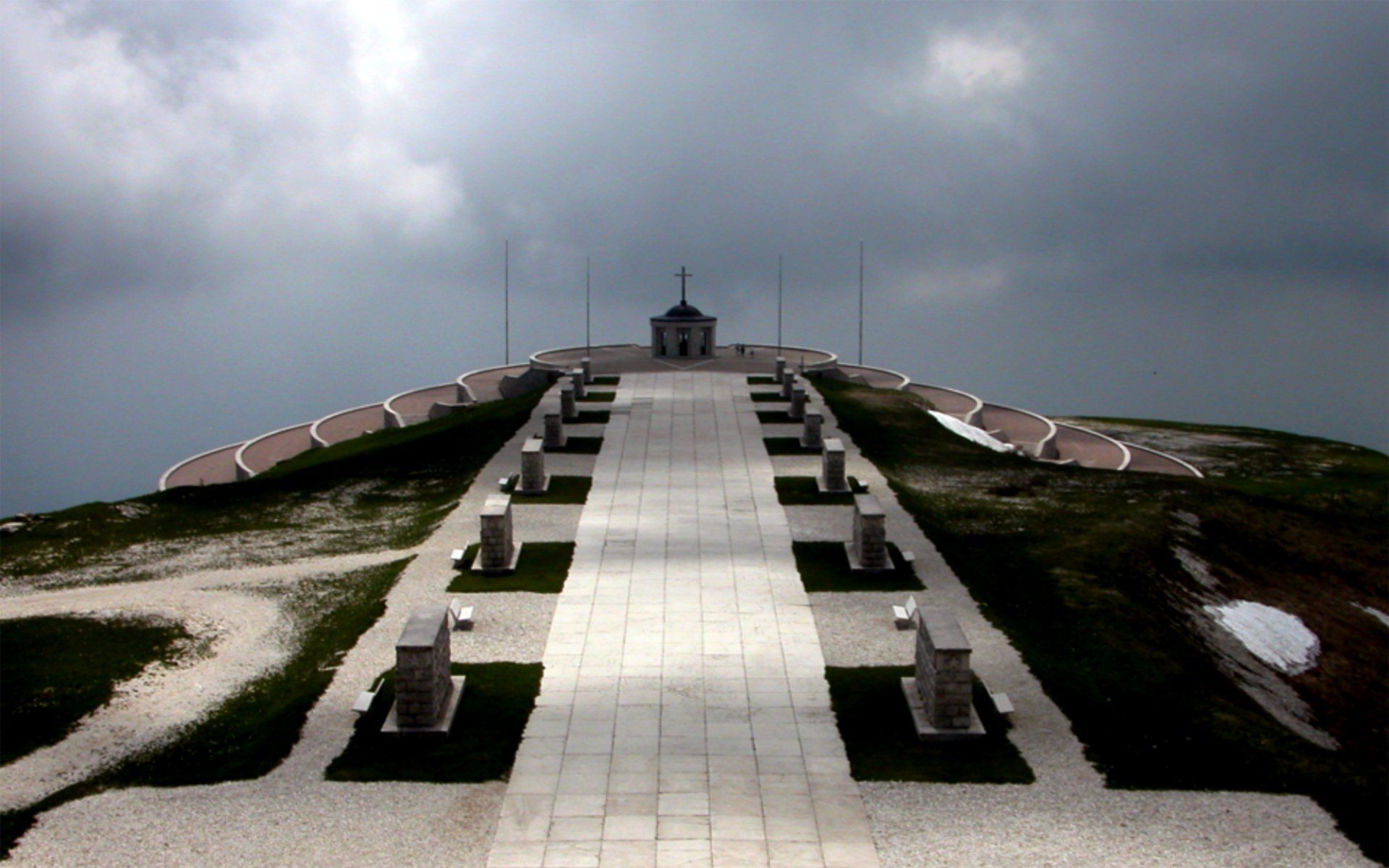 The Military Sanctuary rests at the summit of Mount Grappa 5,800 ft above sea level. The main access is via the Cadorna Road, constructed between 1916 and the 1917 by General Luigi Cadorna to access the front lines, and planned so that it was protected from the fire of artilleries that came from the north.