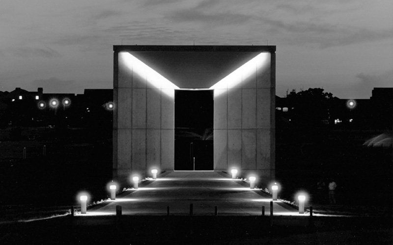 Visitors to the Tribute move from an approach walk to a series of intermediate platforms, then to the final, climactic platform from which they can view the surrounding countryside. The forced perspective of the approach walk and gateway gives the illusion of great depth, expressing the great endurance and long commitment required in the athletes’ pursuit of excellence. This rising progression is a metaphor for the path traveled by the Olympians as they compete, strive, and excel through discipline and desire.